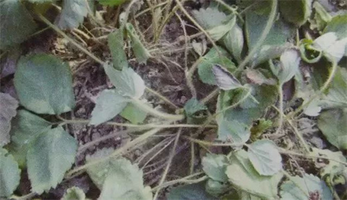 急性萎蔫型大多在春夏季节发生,从定植后到早春植株生长期间,植株的外观上几乎没有异常,只是在草莓生长的中后期,植株突然开始萎蔫,不久就呈现青枯状,逐渐引起全株枯死。